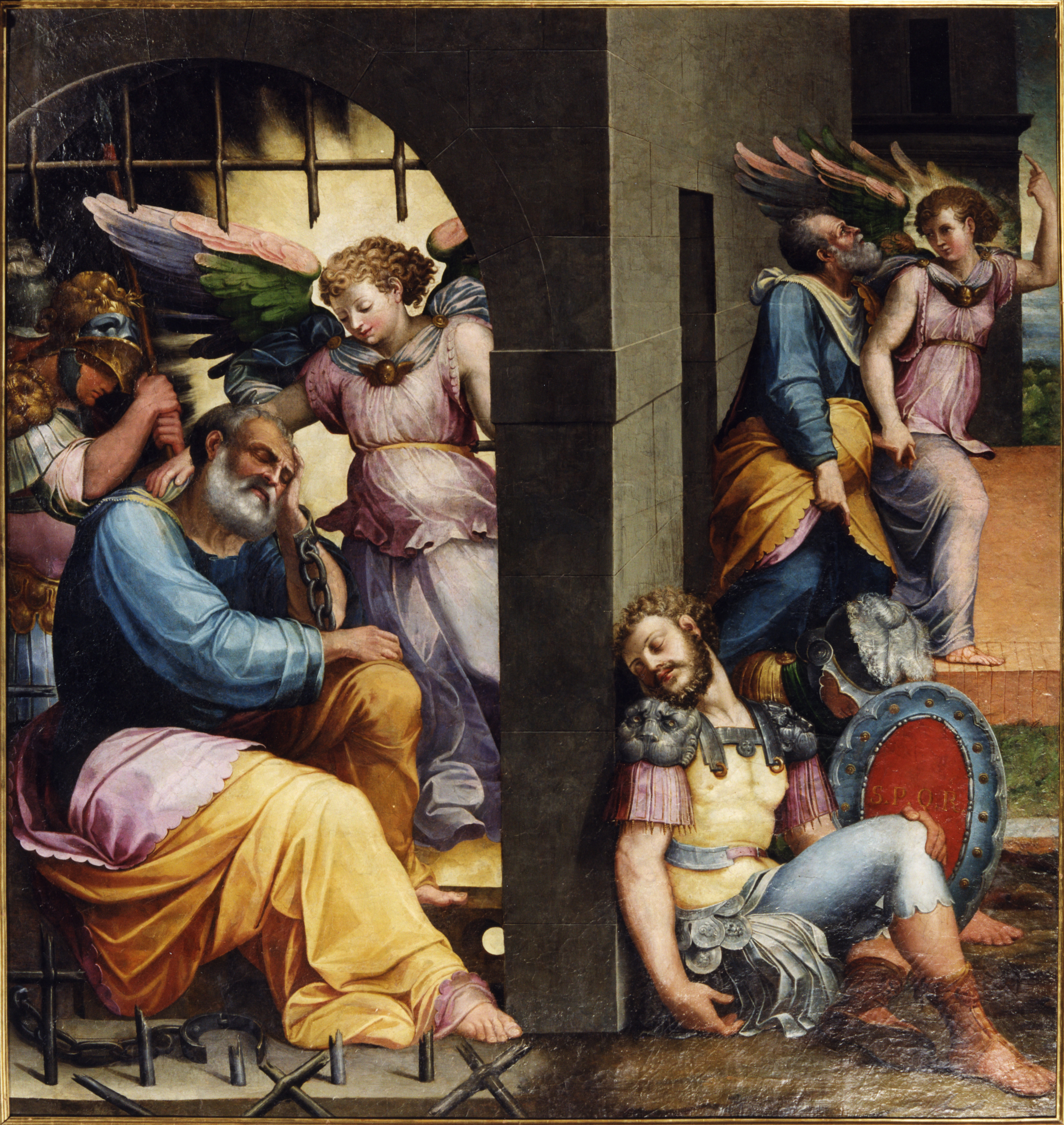 Il ciclo presenta un forte e unitario richiamo alla pittura post-raffaellesca, ampiamente espressa a Perugia nel cantiere della Rocca Paolina dove, a partire dal 1543, lavorarono (guidati probabilmente da Giorgio Vasari): Raffaellino del Colle, Lattanzio Pagani, Dono Doni e Cristofano Gherardi detto il Doceno. La guarigione dello storpio mostra infatti richiami, nell’impostazione della scena, al cartone di analogo soggetto ideato da Raffaello per gli arazzi della Cappella Sistina. Ispirati al tardo linguaggio di Raffaello sono anche i colori, di smaltata purezza, e le forme rifinite con notevole accuratezza.